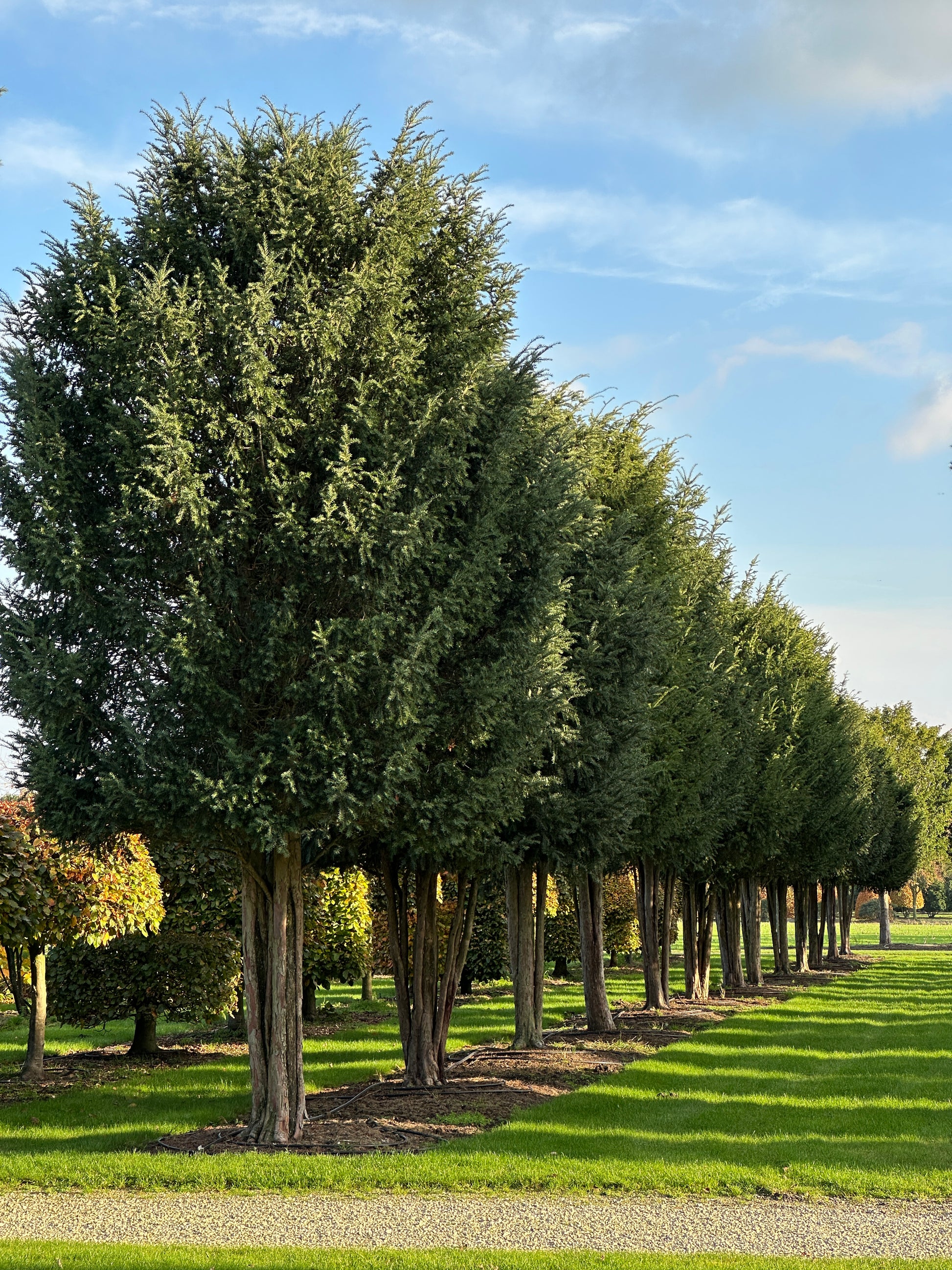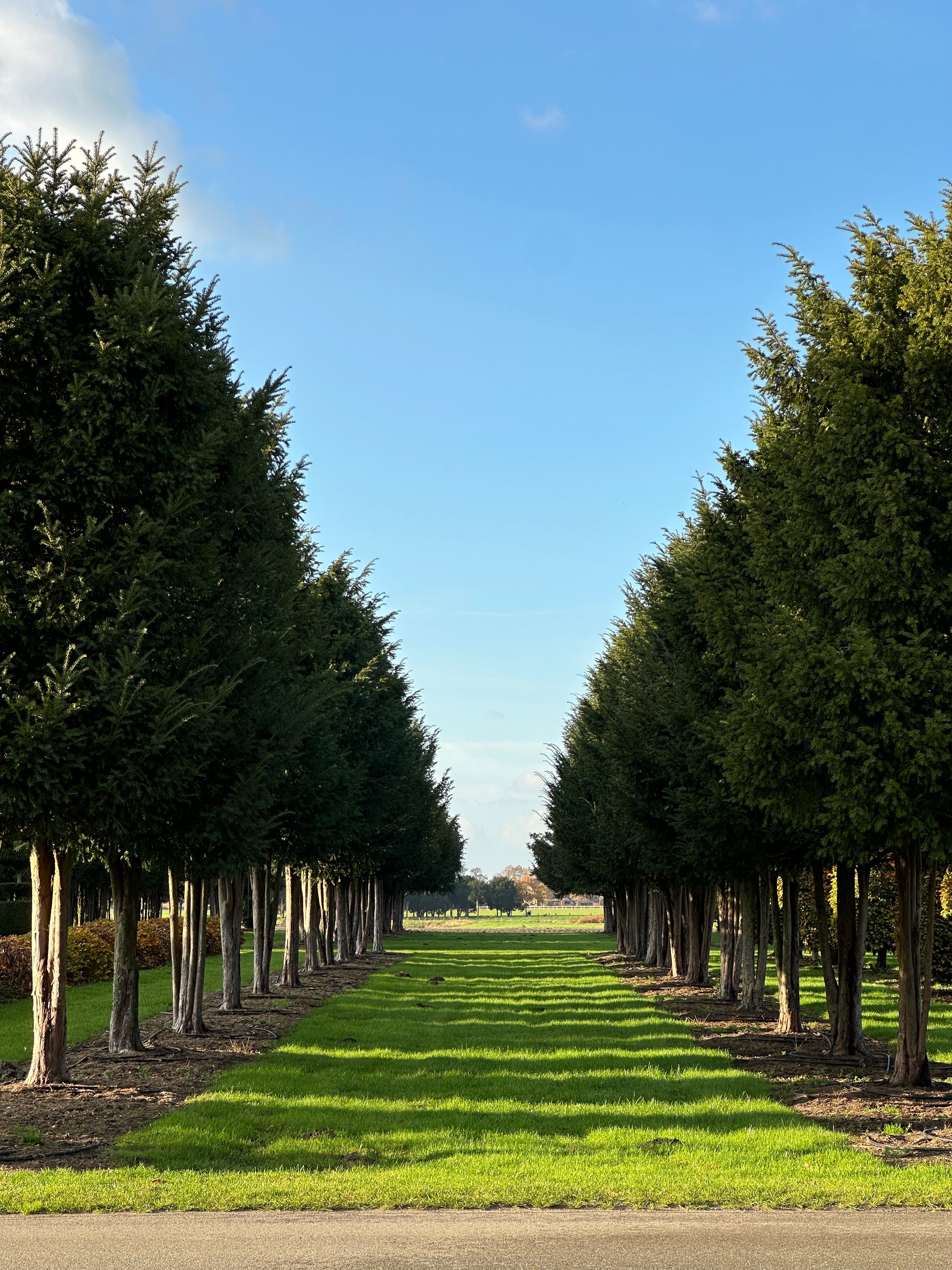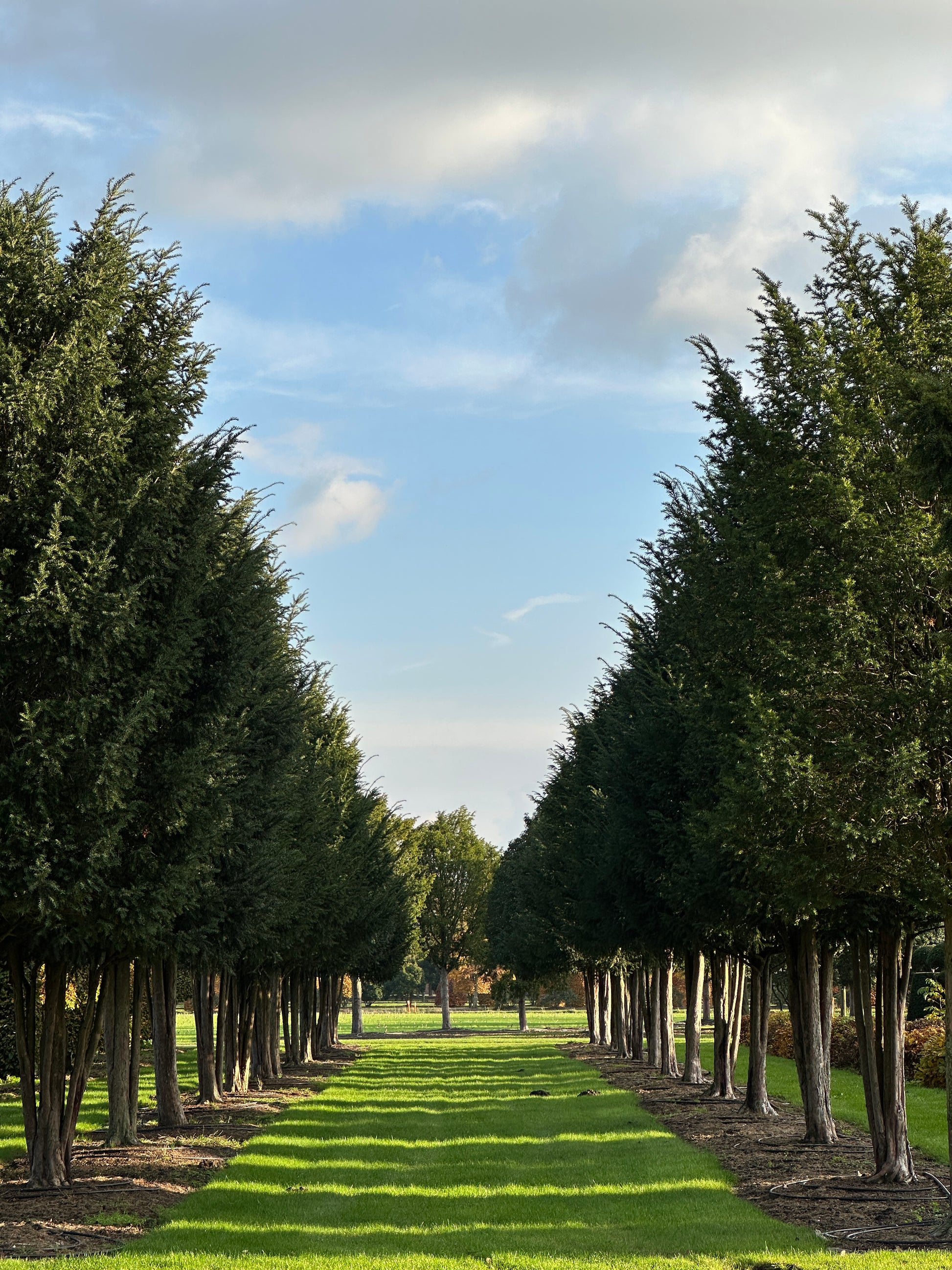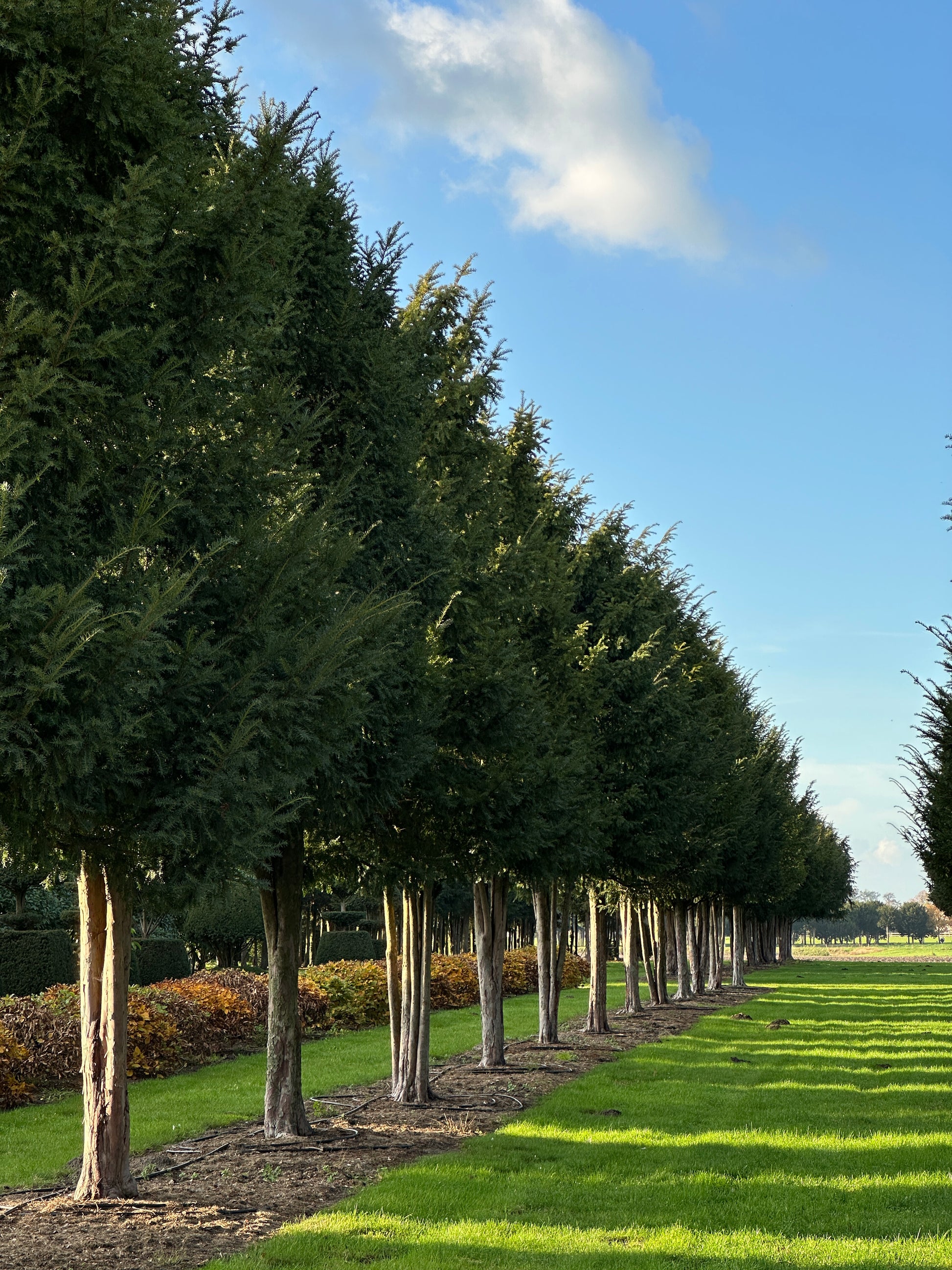 We proudly call these two rows of mature, multi-stemmed Taxus baccata our “avenue”! The 26 specimens each measure 500/600 cm in height and 300/350 cm in width, with stems around 200 cm tall. Because they have grown together from the very beginning, they match beautifully — which is why we would love to keep them as a group. They are perfect for creating your own avenue, for example, and are currently only sold per row.